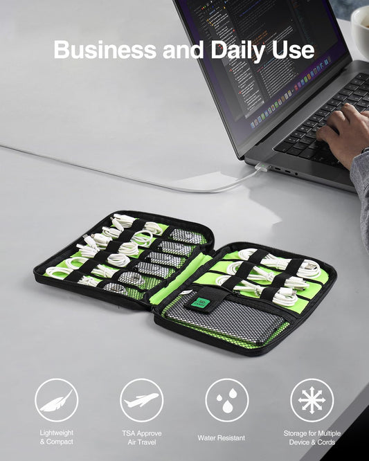 Cord Organizer Travel, Cable Organizer Bag, Portable Electronics Organizer, Travel Essentials for Cord Storage/Charger Case/Cable Storage (Single Layer, Black, Small)